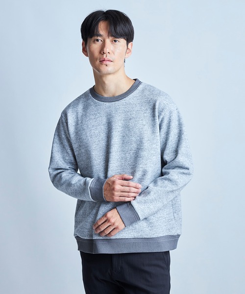 見た目以上に、あたたかい。表情で魅せる大人トレーナー。 ■デザイン・表面は杢カルゼ調ニットソー、裏面はベロア調起毛素材をボンディングした二重構造・内側はやさしい肌触りの起毛仕様で、保温性と快適さを両立・トレーナー型のシンプルなデザインながら、素材の表情で差がつく一着・アウターのインナーとしても映える、程よい存在感 ■コーディネート提案 ・スラックスと合わせて、上品さを意識した大人カジュアルに・デニムやチノと合わせて、力の抜けた休日スタイルに・ブルゾンやコートのインナーとして取り入れ、素材感で奥行きのある着こなしに ■model 185cm size:L 【UNION STATION by mens bigi/ユニオンステーション バイ メンズビギ】 アメリカントラッドを軸にアメリカンカルチャー、ストリート、ワーク、アウトドアといった多様なスタイル・文化を柔軟に取り入れながら、現代の大人にふさわしいファッションを追求するブランドです。 ▼Instagram:@unionstation_official