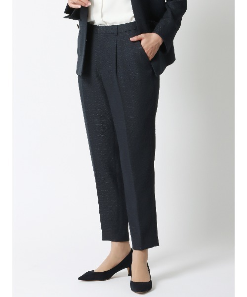 一着で園や学校行事、仕事用や友達との集まりにも着まわしたい! そんなニーズにピッタリマッチする、ツイードセットアップシリーズです。 腰~ヒップにかけてややゆとりを持たせた、細すぎないシルエットのワンタックテーパードパンツ。バックウエストにはゴムを施しており、式典や会議などでの長時間の着用も楽ちんです♪ セレモニーシーンはもちろん、ビジネスや普段使いもしやすい、通常よりも凹凸感の少ないツイード素材をチョイス。柔らかくしっとりとした手触りで、着心地の良さを実感出来る生地です。やや光沢感のあるヨコ糸を使い、ツイードらしい表情も楽しめます。 【仕様】ワンタック/テーパード/ウエスト:バックゴム/裾まで裏地 【裾】シングル仕上げ(裾上げは受付対象外となります。) 【洗濯表示】手洗い可 ーーーーーーーーーーーーーーーーーーーーーーーーーーーー 【スタッフ着用コメント】 ①女性スタッフ 身長:157cm ・着用サイズ 36 ・着用感 すっきりしたテーパードパンツですが、タック入りでヒップまわりにゆとりがあり動きやすさも◎ やや深めの股上で、腰回りになめらかにフィットして履きやすかったです🥰 凹凸感の少ないツイードで、普段使いもしやすいシンプルな形。 ➁女性スタッフ 身長:170cm ・着用サイズ 38 ・着用感 ウエスト後ろにゴムがあるので腰回りが安心でした。 モモ周りもゆったりしてるので、普段選ぶサイズで大丈夫かと思います◎ ーーーーーーーーーーーーーーーーーーーーーーーーーーーー 【おすすめシーン】 食事会、お呼ばれ、デート、パーティー、女子会 オフィスカジュアル、ビジネス、仕事、通勤 結婚式、披露宴、セレモニー、2次会、1.5次会 成人式、同窓会、謝恩会 七五三、お宮参り、誕生日会、入学式(入園式)、卒業式(卒園式) 演奏会、発表会、参観日などの学校行事 ※お届けする商品の下げ札・タグに記載の数値は目安としてのヌードサイズ(体の寸法)のため上記表示と異なる場合がありますが、誤表記ではございません。 ※同サイズまたは同一商品でも、生産の過程で1.0cm~2.0cm程度の個体差や着用感の違いが生じる場合がございます。 ※カラー名は管理用の表記となります。実際の商品の色味は商品画像をご確認ください。 ※商品画像はできる限り実際の色に近づけて掲載しておりますが、パソコン環境により色味に誤差が生じる場合がございます。予めご了承下さいませ。