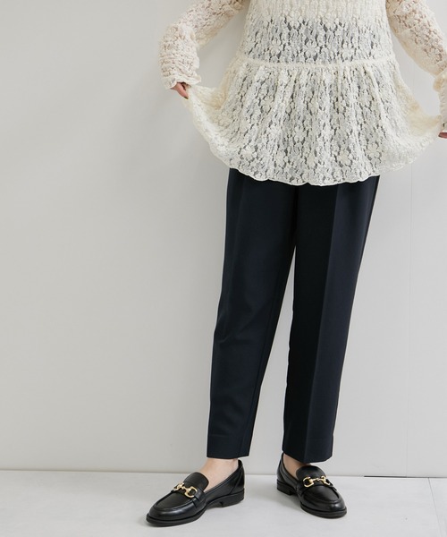<POINT> キレイ目シルエット!万能テーパードパンツ 【素材感】 柔らかい風合いのきれいめツイル素材 【デザイン・シルエット】 センタープレスと裾に向かって細くなったテーパードのシルエットが、カジュアル感を抑えまっすぐ美脚に見えるデザインに。 きちんと感のあるデザインなので、オンオフ問わずコーディネートに活躍します。 やや足首が見えるくらいのすっきりとした丈感もポイント。 【カラー】 チャコール、ライトグレー、ネイビーの3色展開 【おすすめのスタイリング】 同素材のデザインブラウス(品番:GUH16010)(品番:GUH16000)と合わせていただくのがおすすめ! スリムなシルエットなので、ボリューム感のあるブラウスやオーバーサイズアイテムと合わせていただくとバランスの取れたスタイリングになります。 ----------------------------- 裏地:なし 光沢感:なし 透け感:なし 伸縮性:なし 生地の厚さ:普通 手洗い可 ----------------------------- モデル身長:161cm 着用サイズ:F ※撮影時の光、お使いのモニター環境によって色の見え方が違う場合がございます。 ※画像の商品はサンプルです。 実際の商品と仕様、加工、サイズが若干異なる場合がございます。