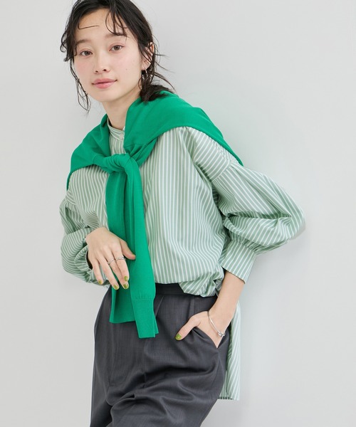 ◇26SS◇ LE CERCLE par ropé <POINT> 季節問わずに長く使える!セルクル定番バンドカラーシャツ 【素材感】 通気性が良く肌ざわりの良い素材。 【デザイン・シルエット】 季節問わずに長く使える!着回し力抜群なバンドカラーシャツ。 身幅や着丈を少しワイドにし、トレンド感のあるシルエットに仕上げています。 ロゴ刺繍がワンポイントに! すっきりとしたバンドカラーのデザインは幅広いスタイリングで活躍します。 【カラー】 ブルー系ストライプ・ホワイト・グリーン系ストライプ・サックス・ピンク系ストライプ・ピンクの6色展開 【おすすめのスタイリング】 1枚ではもちろん、暑い時期には軽い羽織りとしてもぜひ。 涼しい季節には、ニットのインナーとしてレイヤードを楽しむスタイルもおすすめです! ボトムにインしたりアウトにしたりと楽しんで。 ----------------------------- 裏地:なし 光沢感:なし 透け感:ややあり 伸縮性:なし 生地の厚さ:やや薄手 手洗い可 ----------------------------- モデル身長:161cm 着用サイズ:F ※撮影時の光、お使いのモニター環境によって色の見え方が違う場合がございます。 ※画像の商品はサンプルです。 実際の商品と仕様、加工、サイズが若干異なる場合がございます。