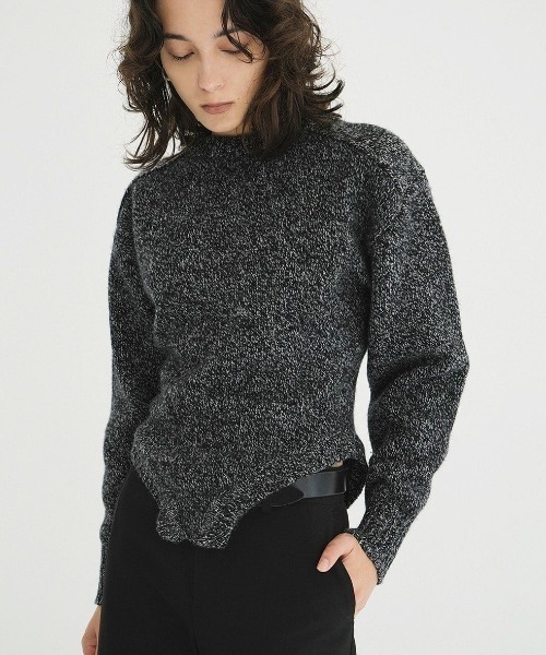 ショルダー部分とウエストのシェイプが印象的な、ボディスーツ型のニットトップス。肩周りのボリュームとウエストのシェイプ感にこだわり、女性らしさとモードな印象を兼ね備えた一着です。バックスタイルは、ゆとりのある身頃をダーツでシェイプすることで立体的なフォルムを表現。あえて柔らかすぎない英国羊毛とナイロンの混紡糸を使用し、甘さを抑えた風合いに仕上げました。コンパクトな丈感で様々なボトムと合わせが可能ですが、特にハイウエストボトムとのスタイリングがおすすめです。---------------------------裏地:なしストレッチ:あり 透け:なし---------------------------※光の当たり具合や端末等の閲覧環境によって、実際の色味と異なって見える場合がございます。予めご了承ください。※表記サイズは商品の実寸で、布製品の特性上、表記サイズと多少の誤差が生じる場合がございます。※画像の商品はサンプルの為、実際の商品と色味、仕様、加工、サイズ、素材等が若干異なる場合がございます。