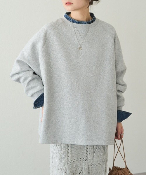 ピュアルセシン 2025 AW collection【Grace of Refined】●商品のお気に入り登録クーポンやタイムセール、再入荷通知やラスト1点などお得な情報を受け取ることができます。ご登録をお忘れなく◎◇さり気ないディテールが映えるシンプルスウェット◇●デザインゆるっとラフに着られるシンプルなスウェット。身頃から袖まで全体にふんわりとした裏起毛素材で、抜群の暖かさ◎たっぷりの身幅にドルマンスリーブの肩回りで、ゆったりとリラクシーな着心地を叶えるポンチョ型に仕上げました。首元のVガゼット、ラグランラインの肩のステッチ、太めの袖リブがスウェットらしいディテールでデザイン性を高めるポイント。袖にはブランドロゴの刺繍を入れ、シンプルながらもさり気ないアクセントをプラスします。バックスタイルではブランドロゴを刻印したゴールドプレートが輝き、カジュアルなスウェットもスペシャルなアイテムに。ベーシックなデザインなので、レイヤードもしやすく着回しが自由自在で、おうち時間からお散歩、お出かけまで、気軽に着られる一枚です。●スタイリング異素材のトップスをレイヤードするスタイリングがリラクシーな雰囲気にアクセントがつき、洗練されたスウェットコーデになりオススメ。デニムシャツならシャープさが加わり垢ぬけた印象に、チュール素材のアイテムとなら女性らしい柔らかな雰囲気になります。ボトムスにはスラックスパンツ、足元はローファーとフォーマルさのあるアイテムでまとめると冬のお出掛けにもぴったりな大人カジュアルスタイルが完成します。スカート選びは、Iラインシルエットがすっきりとしてオススメ◎ニット素材やコーデュロイ素材で季節感あるコーデに。●素材肌当たり滑らかな裏起毛素材を使用した程よい厚みのスウェット生地。===============================洗濯方法:手洗い/蛍光増白剤入り洗剤は使用しないでください。/タンブル乾燥は避けてください。透け感:なし裏地:あり伸縮性:なし光沢感:なし生地の厚さ:厚手【スタッフコメント】年齢:20代前半/身長:153cm/普段着用サイズ:S~Mサイズ着用感:暖かく上半身を包み込むサイズ感。低身長なので、すっきりとしたボトム合わせがゆったりとしたシルエットと好バランスで着用できました。===============================※着用、お取り扱いの際は、商品についている品質表示とアテンションタグを必ずご確認下さい。※撮影場所やお使いのモニター環境により若干お色味が異なる場合がございます。特にロケの撮影では明るく見える傾向にございます。 ※予約商品はサンプルで撮影をしております。若干の仕様が変更になる場合がございますので予めご了承の上ご注文くださいますようお願いいたします。【予約品の入荷時期について】店舗入荷時期と予約商品のお届け時期が異なる場合がございますので、予めご了承ください