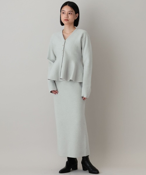 ーーーペプラムシルエットのカーディガンが柔らかさをプラスタイトスカートとのニットセットアップーーー【デザインと特徴】ペプラムディテールがアクセントのカーディガンとタイトスカートのセットアップアイテムスッキリしたVネックデザインとニットならではの編み続きのペプラムシルエットがポイントです。ボタンは高見えするキンボタンを採用しています。セットアップはもちろん、単品使いもしやすいアイテムです。【素材特徴】ストレッチ性のある糸で編み立てているので、肌触りが良く、着心地の優しい素材と編地です。適度な張り感と着心地の良さが特徴です。---------------------------------------------------------《インフォメーション》◆商品のお気に入り登録♡をクリックで気になるアイテムをお気に入り登録していただくと、以下の通知を受け取ることができます。・入荷・再入荷・ラスト一点・セール対象時◆ブランドのお気に入り登録新商品や再入荷、セール、クーポン配布などのお得な情報を受け取ることができますので、是非ご登録ください♪公式Instagram >>> 【@apartbylowrys 】おすすめアイテムや新作情報、" ショップニュース "を更新中!ぜひフォローしてみてくださいね^^