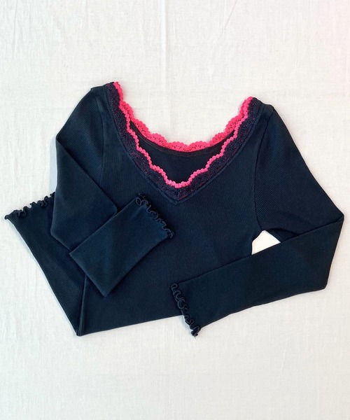 テレコ素材を使った長袖インナーです。レース部分が2枚重ねでバイカラーになっているのがCUTEな一着。前後2WAYで着ていただけます。(V開き、U開きとトップスに合わせて着ていただけます)程よいフィット感で秋・冬・春のインナー使いにおすすめ。首開きのあるトップスと合わせて、レースをちら見せしていただくのもおすすめです。※前後ろで首の開きが違うので、V開き、U開きのお好きな方で着ていただけます。※商品の色味は、撮影場所や光のあたり具合などにより色味が違って見える場合がございます。 また、ご覧のモニター環境や撮影環境により実際の商品と多少色味が異なって見える場合がございます。 予めご了承の上ご注文下さい。《インフォメーション》◆商品のお気に入り登録完売していても再入荷時に再入荷通知を受け取ることができますので、是非ご登録ください。◆ブランドのお気に入り登録新商品や再入荷などの情報を受け取ることができますので、是非ご登録ください。