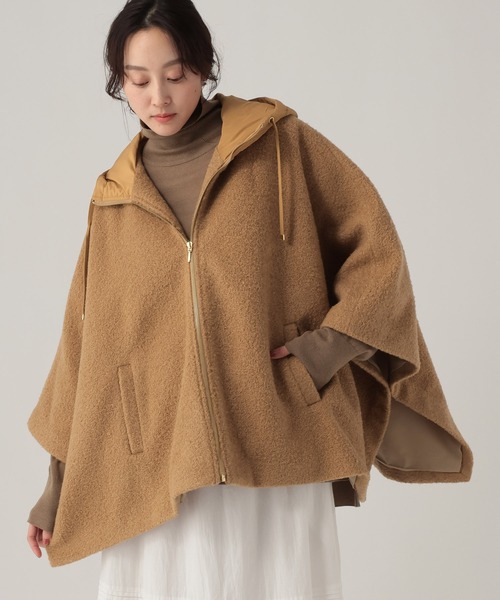 \羽織るだけで、こなれる/ 軽くて暖かい、大人のポンチョ 【悩みに“効く”ポイント】 トレンドのポンチョ型アウターが、表情豊かなカーリーシャギー素材で登場。 ウールライクな見た目ながら、驚くほど軽くて暖かいのが最大の魅力です。 ゆったりとしたワイドシルエットなので、真冬の厚手ニットの上からでも楽に羽織れて、防寒対策もばっちり。 キルトフードのドッキングデザインが遊び心をプラスし、 ゴールドの金具使いがカジュアルすぎない大人のフェミニンさを演出します。 カーリーシャギーの立体感が、 冬のコーデを華やかに見せます。 異素材のキルトフードが、 後ろ姿のアクセントに。 【MATERIAL & FUNCTION】 ウールライクなポリエステル素材。 チクチクせず、柔らかな肌触りです。 [素材] 表地・裏地・フード・中ワタ:ポリエステル100% 【スタイリング】 きれいめに: タイトスカートやワンピースと合わせて。 ゴールドの金具が上品さを引き立てます。 カジュアルに: デニムやワイドパンツと。 ざっくり羽織るだけで、大人の抜け感あるスタイルが完成。 【商品の取り扱いについて】 お手入れはドライクリーニングをご利用ください。 素材の特性上、**ピリング(毛玉)**にご注意ください。 ------------------------ 【お気に入り登録のおすすめ】 ■商品のお気に入り(♡)登録 ┗完売カラーの再入荷通知や、完売間近の通知、ZOZO店のみのセールなどの通知を受けることができます。 ■ショップのお気に入り(♡)登録 ┗新商品や再入荷など、いち早くブランドのお得な情報を受け取ることができます。 ------------------------