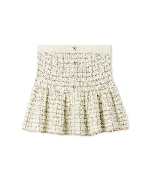 【ツイード調が華やぐニットビスチェ】【Design/Styling】表情豊かな3種類の糸をミックスし、華やかな存在感を放つニットビスチェ。フラッグヤーンやラメ糸を引き揃えて編み上げることで、奥行きのあるツイード調に仕上げました。コンパクトなペプラムシルエットがスタイルにメリハリを与え、ボトムとのバランスも抜群。フロントには煌めくゴールドボタンをあしらい、リュクスなアクセントを添えています。シャツやブラウスに重ねてレイヤードスタイルを楽しむのはもちろん、同シリーズのカーディガン(LWND261014)やパンツ(LWNP261016)とのセットアップもおすすめです。【Fabric】フラッグヤーンやラメ糸をミックスした編地で、ツイード調の奥行きと華やかさを表現。程よい厚みでシーズンを通して着回せる素材感に仕上げています。※照明の関係により、実際よりも色味が違って見える場合があります。またパソコン・スマートフォンなどの環境により、若干製品と画像のカラーが異なる場合もございます。予めご了承ください。商品の色味は、商品単品画像をご参照下さい。※商品画像はサンプルのため、色味やサイズ等の仕様に変更がある場合がございますので、予めご了承ください。