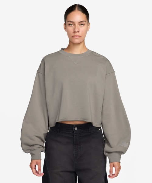 ジョーダン フライト フリース ウィメンズ モッドクロップ クルーネック スウェットシャツ / Jordan Flight Fleece Women's Mod-Crop Crew-Neck Sweatshirt IF1007-016 Enigma Stone