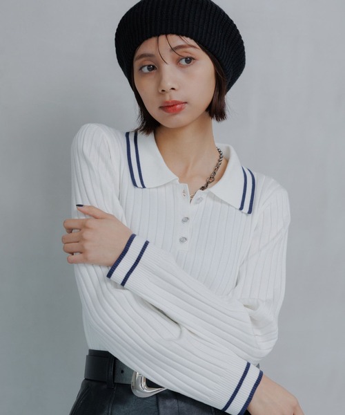 \配色ラインが特徴の大人カジュアルなポロニット/トレンドのポロニット。配色ラインと胸元のエンブレム釦がアクセントに。ストレッチ性がありつつも締め付け感のないリブ編みで、着心地の良さも◎程よくフィットしつつも身体のラインを拾いすぎない細見えニット。長いシーズン着用できる素材感です。スカートでもパンツでも、ボトムを選ばず着ていただけるアイテムです。〈注意事項〉・サンプルにて撮影をしておりますので、実際の商品とは素材や仕様・加工・サイズ等が若干異なる場合がございます。・モニター・環境等により実際の商品と色味が多少異なって表示される場合がございます。予めご了承をお願いいたします。・撮影環境により、光の当たり具合で色味が違って見える場合があります。あらかじめご了承下さい。▼気になるアイテムは《お気に入り登録》がおすすめです!完売カラーの再入荷情報、セール情報、ラスト1点の通知を受け取ることができます!▼《ブランドのお気に入り登録》で新商品や再入荷などのお得な情報をいち早くお知らせします。