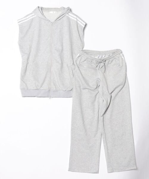 "【NOWLE】ライン柄 ノースリーブ ジップ パーカー/ワイド スウェット パンツ セットアップ※こちらの商品は上下セット売りです。(セットアップ)このセットアップは、ライン柄ノースリーブジップパーカーとワイドスウェットパンツの組み合わせで、トレンドのストリートスタイルを楽しめるアイテムです!上下セットでコーディネートが完成するので、友達との遊びやイベントなど、アクティブなシーンにもぴったりです。トップスは、ライン柄がスポーティなアクセントになり、ノースリーブデザインがスポーティなアクセントになり人気のブロークコアを演出。ジップアップタイプなので、気温に合わせて調節できるのも嬉しいポイント。パンツは、ゆったりとしたワイドシルエットで、動きやすく快適な着心地です。ウエストゴム仕様なので、着脱も楽ちんです。柔らかく肌触りの良い素材を使用し、程よい厚みの生地で、ロングシーズン着用できます。スニーカーと合わせて定番のストリートスタイルに、キャップやバケットハットなどの小物をプラスして、自分らしい個性を演出するのもおすすめです。インナーにTシャツやタンクトップを合わせることで、様々なレイヤードスタイルを楽しめます。友達との遊びやイベント、ダンスなどのアクティブなシーンはもちろん、おうち時間のリラックスウェアとしてもおすすめです。【NOWLE(ノウル)】now+owlの造語で幸福の鳥owl(フクロウ)をモチーフにしたブランド名""今""と""幸福""を大切にという想いを込めて立ち上げたセレクトブランドです。【NOWLEの新着情報について】▼商品のお気に入り登録完売カラーの再入荷通知や、ラスト1点の通知、セールの通知も受け取ることができます。▼ブランドのお気に入り登録新商品や再入荷等、いち早く""NOWLE""のお得な情報を受け取ることができます。※こちらの商品の画像はサンプルを使用しているため、一部製品と仕様が異なる場合がございます。ご覧のモニター環境や撮影環境により実際の商品と多少色味が異なって見える場合がございます。この点をご了承の上、お買い求めください。ご理解の程よろしくお願いいたします。セットアップ,スウェット,ロゴ,スポーティ,カジュアル,ストリートファッション,スポーツミックス,ルームウェア,上下セット,ノースリーブ,ジップパーカー,ワイドパンツ,ライン柄,韓国ファッション, ユニセックスCZ_0008"