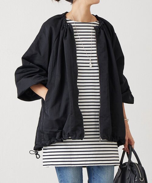 ■アイテム襟元・袖・裾にたっぷりとギャザーを施した、立体感のあるナイロンブルゾン。ジップやドロストコード使い、スポーティーな要素を効かせつつ、ラグランスリーブのゆったりとしたシルエットで女性らしい上品さも兼ね備えたアイテム。軽くて滑らかなナイロン素材は、さっと羽織れて着心地も快適。ボリュームがありながらも重たく見えず、ワンピースやスカートスタイルとも好相性です。程よい抜け感と表情を添えてくれる、頼れるアウターです。■素材・洗濯表示素材表地:ナイロン100%裏地:ポリエステル100%洗濯表示:ドライクリーニング(石油系)※着用時・洗濯時は、必ず取扱い表示・タグをご確認の上、お取り扱い下さい。----------------------------------伸縮性:生地なし・袖口や裾あり光沢:あり厚み:ふつう透け感:なし裏地:ありなしポケット:あり(両サイド)ファスナー:あり付属品:襟ぐり、裾にゴム製のドローコード入り(ストッパー付き)----------------------------------《お取り扱い上のご注意》・タンブル乾燥不可《予約商品について》・サンプルの為、素材情報、洗濯表示については企画段階の情報を記載しております。公的機関での試験データ結果を受け、量産にあたり混率や洗濯方法の変更が発生する場合がございますので、ご了承くださいませ。・サンプルでの撮影、計測をしております。商品の仕様が一部変更になる場合がございます。・撮影サンプル品はブランドタグがついておりません。製品にはタグがつきますので、製品の表に縫い糸が見える場合がございます。・工場の生産の都合上、納期が変更になる場合がございます。検品や輸送の関係で、発送日が前後しますのでご了承ください。また、入荷状況により、お客様への発送が店頭販売より遅れる場合もございます。・店頭に陳列していた商品も含まれる場合がございます。《商品画像について》ご覧頂いている商品の写真につきましては、できるだけ実物の色に近くなるように努めておりますが お使いの環境(モニター、ブラウザ等)の違いにより、色の見え方が実物と若干異なる場合がございます。 予めご了承ください。《ハートをタップして商品のお気に入り登録》【ハートをタップ】登録カラーの商品の「残りわずか」「再入荷」「値下げ」通知を受け取ることができます。【各ショップアプリにてブランドフォロー】 新商品などの入荷情報、最新のニュースやお得な情報を受け取ることができます。