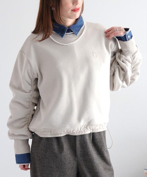 着るだけでサマになるシルエットが魅力的♪ほどよいゆるさが大人可愛い!ショート丈のボリュームスリーブスウェットプルオーバー!ふんわりバルーンシルエットが着映えし、やわらかな印象を演出してくれます☺︎◇Point◇極寒の冬に1着は持っておきたい裏起毛スウェット!でもデザインも凝っていてほしい!そんな女性の願いを叶えてくれるスウェットです☺︎①袖にはふんわりシルエットを演出するために【ギャザー】がたっぷり!②形をその日の気分で変えれる、裾には【ドロスト】付き。絞ることで着丈も調整できます。③そしてぽかぽかふんわり暖か【裏起毛】。④MA-1ジャケットを連想させる袖の切り替えとボリュームスリーブ。4つのコントラストが今っぽく、バランス良く着こなせます◎ボリュームのある袖がコーデにワンプラスの可愛さを演出してくれますよ☺︎◇Material◇ ⚫︎大人可愛い色合いに仕上げました☺︎画像で見てくださいね♪⚫︎とっても柔らかく気持ちのいい素材を採用⚫︎丁度いい丈感がレイヤードしてもごわつかないシルエット☺︎⚫︎手首もキュッととまるリブ仕様、袖の溜まり具合も可愛く演出♪◇Coordinate◇デニムやスカート、なんでも合わせやすいシルエット。季節感をぐっと高めたコーディネートを楽しめます◎シャツや色物のニットをレイヤードして配色のアクセントを加えれば、旬のムードが漂うワンランク上の着こなしに。チェック柄ロングスカート(CCB-0861)合わせで古着風の着こなしが今年らしくておすすめ。※照明や天候により実際の色味と異なって見える場合がございます。ご了承くださいませ【キーワード】#Y2K#10代#20代#30代#40代#50代#大人可愛い#スウェット#裏起毛#袖ギャザー#冬コーデ