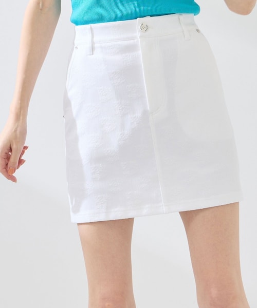 <吸水速乾> 【デザイン/素材】 ポリエステルコットンのオリジナルジャガード素材を使用したスカート。 きれいなセミAラインシルエットで、格子風にデザインした ロゴグラフィックがアクセントになっています。 【カラー】 ホワイトはコーディネートしやすく、他カラーは濃淡のある見え方がポイント。 特にデニム風のネービーカラーは、スタイリングに抜け感を加えてくれます。 同素材でハットも展開しており、セットでのコーディネートも素敵。 ーーーーーーーーーーーーーーーーーーーーーー 裏地:なし(別インナーパンツ付き) 光沢感:なし 透け感:ホワイトはやや透け感あり ウエストゴム:なし ポケット:あり 伸縮性:なし ーーーーーーーーーーーーーーーーーーーーーーー 【モデル着用サイズ】 身長:167cm 着用サイズ:M 身長:170cm 着用サイズ:M ※実際の商品はお客様のお使いの端末や閲覧環境により、写真と実物の色味や質感が 多少異なって見える場合がございます。予めご了承ください。 ※画像の商品はサンプルです。 実際の商品とは仕様・加工・サイズ・素材が若干異なる場合がございます。 JUN&ROPE’(ジュンアンドロペ)は、「Function GOLF」をコンセプトに、“おしゃれをする楽しさ”と“高いパフォーマンスを支える機能性”を両立させたゴルフウエアブランド。 スタイリッシュなレディースゴルフウエアに加え、2024年秋には本格的なメンズ向けコレクション「NOIR(ノワール)」がデビュー。幅広いゴルファーに向けて、さらに多彩なラインナップを展開しています。 また、女子プロゴルファーをはじめとする多くのプロ選手とも契約し、実際のプレーを支える“本物”のモノづくりも魅力。プロにも選ばれ、信頼される機能性とデザイン性を兼ね備えたアイテムは、ゴルフ場でもタウンユースでも活躍します。