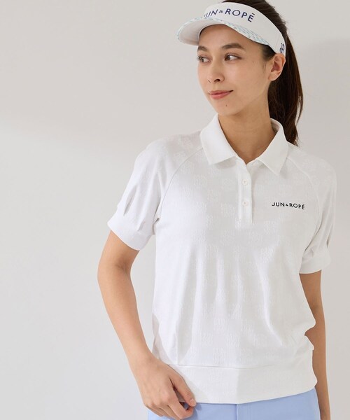 <UV><吸水> 【デザイン】 オリジナルジャガード素材を使用した、長く着られるカットソー素材の タックスリーブポロ。 袖や裾口にタックを施し、1枚でもアクセントになるデザインに仕上げました。 【シルエット】 ゆったりとしたアウトシルエットで肌離れがよく、快適な着心地も魅力です。 ーーーーーーーーーーーーーーーーーーーーー 裏地:なし 光沢感:なし 透け感:ホワイトはやや透け感あり ポケット:なし 伸縮性:あり ーーーーーーーーーーーーーーーーーーーーーーー 【モデル着用サイズ】 身長:170cm 着用サイズ:M ※画像によっては実際の色味と異なる場合があります。 正しい色味は生地アップ画像をご確認ください。 ※画像の商品はサンプルです。 実際の商品とは仕様・加工・サイズ・素材が若干異なる場合がございます。 JUN&ROPE’(ジュンアンドロペ)は、「Function GOLF」をコンセプトに、“おしゃれをする楽しさ”と“高いパフォーマンスを支える機能性”を両立させたゴルフウエアブランド。 スタイリッシュなレディースゴルフウエアに加え、2024年秋には本格的なメンズ向けコレクション「NOIR(ノワール)」がデビュー。幅広いゴルファーに向けて、さらに多彩なラインナップを展開しています。 また、女子プロゴルファーをはじめとする多くのプロ選手とも契約し、実際のプレーを支える“本物”のモノづくりも魅力。プロにも選ばれ、信頼される機能性とデザイン性を兼ね備えたアイテムは、ゴルフ場でもタウンユースでも活躍します。