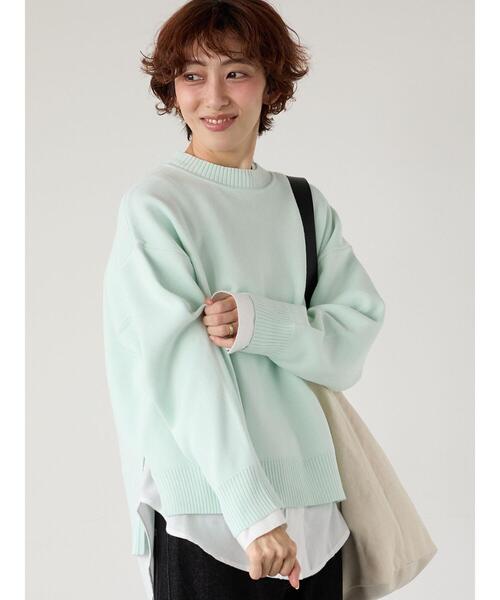 コットンタッチの滑らかな肌触りが魅力的なニットプルオーバー。前後差のある裾のデザインは、サイドから見てもすっきりとした印象を与えます。お好みのスタイルを選べる豊富なカラーバリエーションも魅力的。どんなスタイリングにも合わせやすく、着回しの幅が広がるアイテムです。※商品画像は、撮影環境やお客様のご利用のPC・スマートフォンのモニター環境などにより実物と色味に差異がある場合がございます。【その他採寸】F 着丈:[前]55cm[後]60cm
