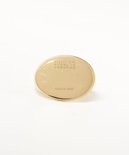 ミニマルながら象徴的な存在感を放つオーバル型のダブルフィンガーシグネットリング。表面にはMM6の「ニューメリックロゴ」が刻印され、クラシックなジュエリーの形式にメゾンの遊び心が宿ります。磨き上げられた仕上げとテーパードしたバンドが、日常に取り入れやすい洗練されたサブバージョンを表現しています。メイン素材: シルバートーンの真鍮 100% ポリッシュ仕上げのオーバルシグネットリング フェイス部分にナンバーロゴのデボス加工 テーパードバンド 製造国:イタリア