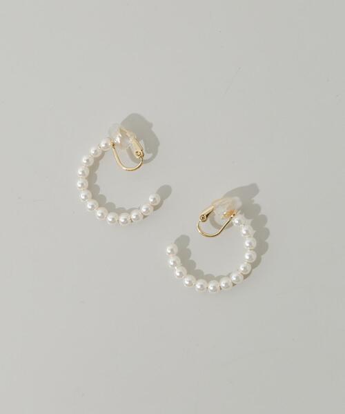 【横顔を品よく飾るパールイヤリング】●小粒パールが連なるフープデザイン●結婚式などのセレモニーシーンにもおすすめ●派手になりすぎない横顔のアクセント小さなパールを贅沢に並べた、エレガントなフープイヤリング。パールの柔らかな光沢が、顔周りに女性らしい優しさを添えてくれます。デイリー使いはもちろん、結婚式などのフォーマルなシーンにもマッチ。一つ持っているだけでコーディネートを格上げしてくれる、大人の万能アイテムです。【2026 Spring/Summer】【26SS】※メッキ製品(特に銀メッキ)は変色しやすいため、こまめなお手入れで防止してください。長期放置やスプレー香料などの同時使用は、特にお避けください。※メッキ製品は、アレルギー体質の方や体調が低下している方など、かぶれることがあります。肌に異常を感じた時はご使用をお止めいただき専門医にご相談ください。※アクセサリーは壊れやすいものです。取り扱いに注意していただき大切にご使用いただけるようお願い申し上げます。重量(片耳) : 約1.5g※商品画像は、光の当たり具合やパソコンなどの閲覧環境により、実際の色味と異なって見える場合がございます。予めご了承ください。※商品の色味の目安は、商品単体の画像をご参照ください。▼お気に入り登録のおすすめ▼お気に入り登録商品は、マイページにて現在の価格情報や在庫状況の確認が可能です。お買い物リストの管理にぜひご利用下さい。-