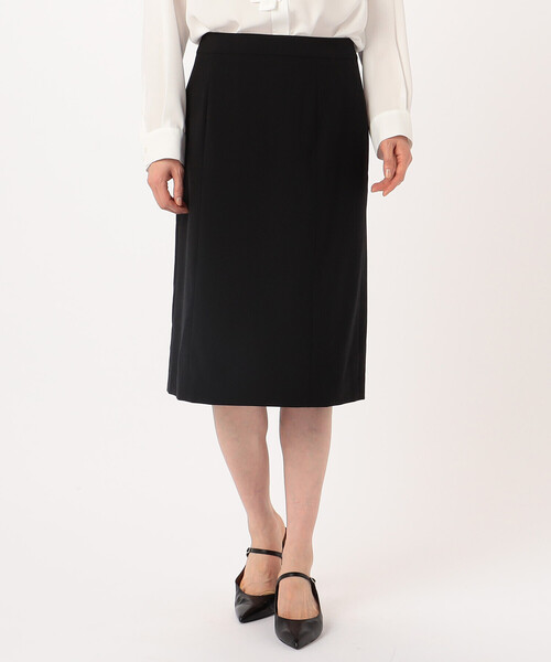 《デザイン》洗練された雰囲気のスカートです。タイトではなく少し裾に広がっているシルエットは合わせやすくベーシックに使えるアイテムです。ウエストはぐるりカーブゴムを入れ、ギャザーを寄せないデザインで、フィット感がありながらもきれいに見える仕上がりです。ゴムを身返しに縫い付けているので、ストレッチ性のある生地に合わせて伸縮し、動きに追従してくれます。前はパネルで切り替えることで、ウエスト周りをすっきり見せてくれます。あえてポケットは付けずシルエットを美しく見せるようにしています。《素材》高級スーツ地にも使用される細い糸のウールを使用したトロピカルウールです。ポリウレタンやストレッチのポリエステルを使わずにウール100%でもストレッチ性を得られる加工を施した素材です。ウール本来の風合いを最大限生かしつつ、2WAYストレッチによる着心地に優れた生地です。ポリウレタンを使用していないので、伸縮性の劣化がなくサステナブル性も高い素材です。通気性が良く清涼感があり快適で長い期間着用ができます。《セットアップ》同素材のジャケット(商品番号:15-82GG10-204)と合わせて、セットアップとしてお召しいただけます。※在庫がない場合もございますので、予めご了承くださいませ。