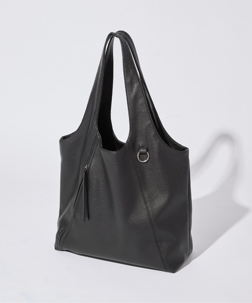 収納力抜群のシンセティックレザーバッグA4ファイルやPCも入るので普段使いにおすすめーーー■ポイント大人気ラウンドバッグをリプロダクトした、新作デザイントートが登場。外側ポケットのタッセルジップや切り替えデザインを新しく導入し、よりスタイリッシュな印象に。A4ファイルやノートパソコンも入る大きさなので、通勤や通学などデイリーユースに最適です。外側のポケットとは別に、内側にもポケットが付いており、小物の収納にも便利です。アクセサリーやキーホルダーも付けられるように、キーリングパーツもあしらっています。収納口にはスナップボタンが付いているので、物が落ちにくいのも嬉しいポイントです。■素材柔らかで高級感溢れるシンセティックレザーを使用しています。シボタイプを採用することで、傷汚れが目立ちにくく、長い期間ご利用頂けます。======容量:大きめ(A4ファイル/ノートPC収納可能)収納口:ボタンあり外ポケット:あり(中1つ)内ポケット:あり(小1つ)キーリング:あり(取り外し可能)======ーーー