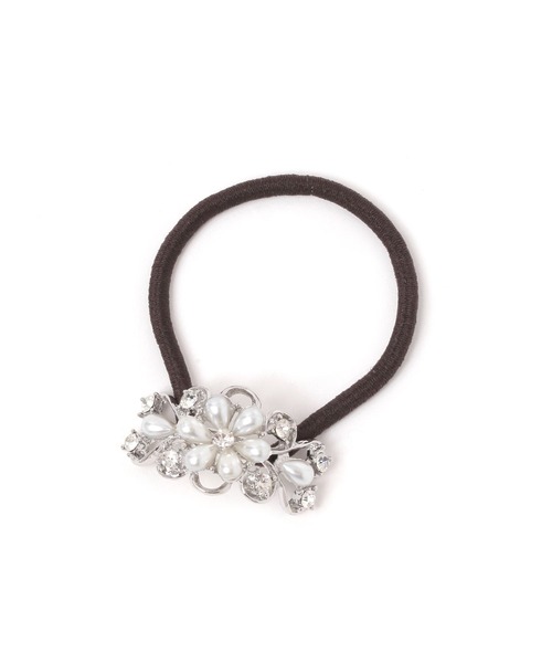 フラワーモチーフをオーバルパールで表現したヘアゴム。結ぶだけで、華やかなヘアアレンジが完成するアイテムです。