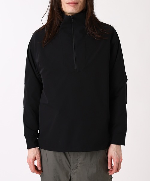 •構成する成分の一部に植物由来成分が使用されているPTT (ポリトリメチレン・テレフタレート)繊維を採用したストレッチ素材。 •形態安定性に優れシワになりにくく二重織り構造のため肌離れが良く、環境配慮型の撥水加工も付与した素材。 •二重織で仕上げた肌触り豊かでストレッチ性の高いハーフジップスタンドカラージャケット。 •ミリタリーデザインからインスピレーションを受け、実用的な切替と高めのスタンドカラーが特徴。 •裾にはドローコードを配しシルエットなど調節が可能。素材 ポリエステル100%