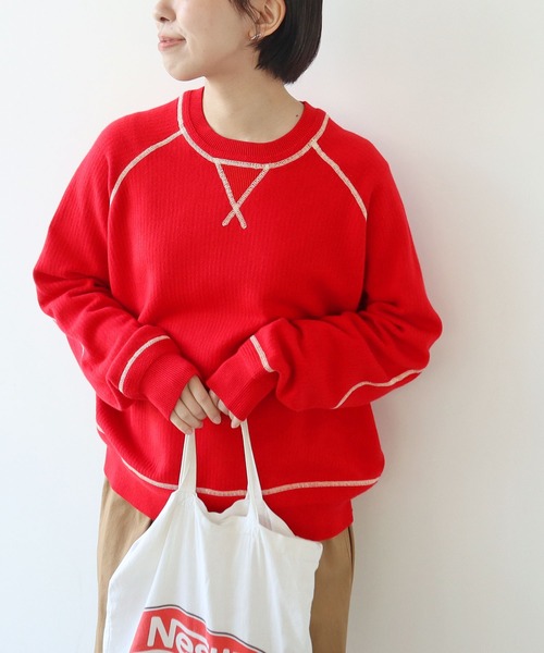 ●●● WEB LIMITED COLOR / BLACK ●●●カシミアのように滑らかで柔らかい質感の綿糸で編み上げた、スウェットライクなラグランプルオーバー。ロングシーズン活躍する綿ニットはウールよりも毛玉が出来にくく、日々の着こなしに気兼ねなく取り入れられます。ボトムとのバランスが取りやすいやや短めの丈でありつつも、リラックスして着られる身幅で絶妙なサイジング。ベーシックながらも、配色の振りステッチやエルボーパッチのディテールが古着のような雰囲気を演出。袖下にマチをつけたことで立体感が生まれ、シンプルなスタイリングでも着映えするアイテムに。ブラックはWEB限定カラー。シックなカラーでも程よくカジュアルな印象になるよう、アイボリーの糸でステッチミシンを入れました。スウェット感覚で着られる上質なアイテムは、シャツやタートルネックとのレイヤードもごわつきにくく、様々なコーディネートをお楽しみいただけます。--------------------透け感:なし裏地:なし伸縮性:あり光沢感:なしポケット:なし--------------------【素材の特性・お取り扱いの注意】・取り扱いの注意については取り扱い表示をよくご確認の上、着用をお願い致します。・洗濯の際に多少の縮みがあります。型くずれを起こすことがありますので、洗濯後は形を整えてから日陰で平干しをして下さい。・ハンガーに掛けたまま保管すると伸びますので、お避け下さい。・(レッド、ブラック)汗や雨等で濡れた場合、摩擦などにより色落ちし、他の衣料に移染することがありますのでご注意下さい。※撮影画像は、光の当たり具合やモニターの環境により色味が違って見える場合があります。あらかじめご了承下さい。