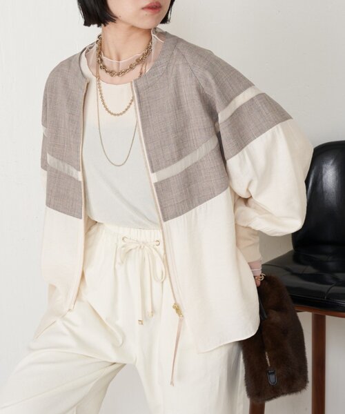 -商品ポイント- ・上品なシアー感がオトナな印象に演出してくれるブルゾン。 ・楊柳の清涼感あふれる素材で、真夏でも軽やかにお召いただけます。 ・二の腕部分は透け感がないので、体型カバーが叶います。 ・とても軽量なので、持ち運びにも便利。日焼け防止、冷房対策にぴったりです。 ・ゴールドの金具が、カジュアル過ぎず高級感を演出してくれます。 ーマテリアルー ■透け感:あり ■裏地:なし ■伸縮性:袖部分あり ■光沢感:ややあり ー洗濯方法ー ドライクリーニング ー注意事項ー 商品の画像はできるだけ実物に近い色味で掲載しておりますが、ご覧になるモニターや照明の環境により、実際の色味と若干異なって見える場合がございます。 あらかじめご了承くださいませ。 ・画像の商品はサンプルです。 実際の商品と仕様、加工が若干異なる場合があります。 ・サイズ表記はあくまで目安となります。 __________________________________ ※取り扱いについては、商品についている品質表示でご確認ください。 ※照明の関係により、実際よりも色味が違って見える場合があります。 またパソコン・スマートフォンなどの環境により、若干製品と画像のカラーが異なる場合もございます。予めご了承ください。 ※詳細画像の色合いをご参照ください。予めご了承ください。 __________________________________ 【お買い物をよりお楽しみいただくために♪ 】 ▼ 商品のお気に入り登録 お気に入りアイテムのお値下げ・再入荷・在庫ラスト1点など通知を受けることができます。 ▼ブランドのお気に入り登録 Jena espace merveilleuxの新商品や再入荷、セール、クーポン配布などお得な情報を受けることができます。