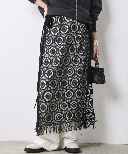 プラスワンで完成する、大人の洗練レイヤード。 ■デザイン 手持ちのアイテムに重ねるだけで、 スタイリングの鮮度を劇的に引き上げる レースオーバースカートです。 最大の特徴は、贅沢にあしらわれたカットワークレースと、 裾で軽やかに揺れるフリンジのディテール。 巻きスカートのような使用なので、 ワイドパンツや厚手のスウェットと重ねてももたつかず、 スマートなIラインをキープできるよう計算されています。 カジュアルな強さとレースの繊細さが溶け合い、 単調になりがちなデイリースタイルに、 大人の遊び心と都会的なエッセンスをひとさじ加えてくれる、 今季欠かせないステートメントアイテムです。 ■素材 「立体感が際立つ、上質な幾何学レース」 程よい厚みとハリ感のあるケミカルレースを使用しています。 花柄ではなく、あえてエッジの効いた幾何学模様のパターンを採用することで、 大人の女性が取り入れやすい洗練された印象に仕上げました。 裾のフリンジは一本一本が丁寧に仕立てられており、 歩くたびに美しいリズムを生み出します。 しっかりとした素材感ながらも、 透け感を活かした軽やかな着心地で、 シーズンを問わずレイヤードを楽しめる一着です。 ■おすすめのスタイリング Clean Sporty: グレーのスウェットパンツにホワイトを重ね、 ベージュのブルゾンを羽織った、クリーンで都会的な異素材ミックス。 Mode Monotone: オールブラックの着こなしに投入し、 レースの透け感で重厚なスタイリングに抜け感と奥行きをプラス。 Modern Trad: トレンチコートやロングシャツの裾からレースとフリンジを覗かせ、 トラッドな装いにフェミニンなエッセンスを。 ※ウエストのヒモは長く設計されており 左側で結んで長くヒモを垂らしたり、 ヒモをウエストでぐるぐると巻き、 タイトスカート風にに見せたりと ヒモの巻き方でもイメージが変えられます <仕様> ウエストリボン結び 柄の出方が多少異なる場合があります。 透け感:あり 伸縮性:なし 生地の厚み:普通 光沢感:なし 季節:オールシーズン向き シルエット:普通 <洗濯方法> 洗濯機OK ネット使用 <対応サイズ> M :ウエスト:64~69/ヒップ:91~95 L :ウエスト:69~77/ヒップ:92~100 LL :ウエスト:77~85/ヒップ:97~105 3L :ウエスト:85~93/ヒップ:102~110 4L :ウエスト:93~101/ヒップ:107~115 5L :ウエスト:101~109/ヒップ:112~120 ※こちらはヌードサイズです。 ※平置きのアイテムサイズとは異なる計測方法となりますのでご了承ください。 #ゆったり#体型カバー#二の腕カバー #大きいサイズ#プラスサイズ#大きいサイズレディース #M#L#LL#3L#4L#5L 【気になる商品はお気に入り登録がおすすめ】 ▼商品のお気に入り登録 完売カラーの再入荷通知や、ラスト1点の通知、セールの通知などお得な情報が受け取れます。 ▼ブランドのお気に入り登録 新商品や再入荷など、ブランドのお得な情報をいち早く受け取ることができます。 【CHIC STYLE】 シルエットやディティールにこだわったアイテムが好評。 色使いや素材感を大事に、洗練されたデザインと着用の力を 感じていただけるこだわり大人カジュアルを提案。 ▼公式Instagram @chicstyle_officialsite