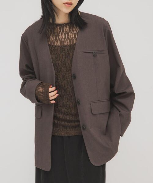 【きちんと感とモードさを兼ね備えたノーカラージャケット】きちんと感とモードさを兼ね備えた、さりげない杢調がポイントのノーカラージャケット。シンプルに見えますが、比翼デザインを落とし込んだ仕様や、フロントの胸ポケット、首元がすっきりと見えるVネック仕様など細部までこだわりました。同素材のベルトSETスラックス(KB26130-2045030)とセットアップで着ていただけます。【2026 Spring/Summer】【26SS】総重量 : 約605g※商品画像は、光の当たり具合やパソコンなどの閲覧環境により、実際の色味と異なって見える場合がございます。予めご了承ください。※商品の色味の目安は、商品単体の画像をご参照ください。▼お気に入り登録のおすすめ▼お気に入り登録された商品は、マイページにて現在の価格情報や在庫状況の確認が可能です。お買い物リストの管理にぜひご利用ください。素材感透け感 : なし伸縮性 : なし裏地 : あり光沢 : なしポケット : ありone