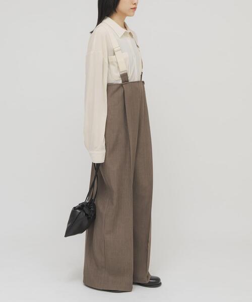 【シーズンレスの着回しができるサスペンダーパンツ】春らしいナチュラルカラーのサスペンダーがポイントの、少し落ち感のあるラックス素材を使用したサロペットパンツ。サスペンダーは調整可能なのでお好みの位置で着ていただけます。合わせるインナー次第でロングスパンの着こなしが叶い、スタイルアップして見える1着です。【2026 Spring/Summer】【26SS】[サスペンダー]one : 長さ約86cm / 幅3.5cm※商品画像は、光の当たり具合やパソコンなどの閲覧環境により、実際の色味と異なって見える場合がございます。予めご了承ください。※商品の色味の目安は、商品単体の画像をご参照ください。▼お気に入り登録のおすすめ▼お気に入り登録された商品は、マイページにて現在の価格情報や在庫状況の確認が可能です。お買い物リストの管理にぜひご利用ください。素材感透け感 : なし伸縮性 : ややあり裏地 : なし光沢 : なしポケット : ありone