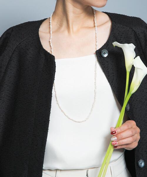 【品よく整う、淡水パールのロングネックレス】小粒のバロック淡水パールをあしらったロングネックレス。1連・2連での着用はもちろん、前で結んで垂らしたり、Y字にアレンジしたりと、幅広い付け方を楽しめます。CHIGNONオリジナルで製作したマンテル金具は、華奢なチェーンの印象を損なわない極小サイズを採用。同じマンテル金具を使用した「CR26110-2245008 CHIGNONロング2チェーンマンテルネックレス」とは、2本を繋げてミックス巻きするアレンジも可能。首元にボリュームと華やかさをプラスしてくれます。小粒の淡水パールは、オケージョンやパーティシーンはもちろん、デイリーにも取り入れやすい万能なアイテムです。POINT ・小粒バロック淡水パールで、上品さと抜け感を両立・1連・2連・Y字など、アレンジ自在なロングデザイン【CHIGNON / シニヨン】“今欲しい服、今着たい服”“CLOTHING FOR EVERYDAY LIFE”大人の女性の気分や価値観に寄り添った、日常に彩りを加えるワードローブを提案します。【2026 Spring/Summer】【26SS】総重量 : 約16.5g※商品画像は、光の当たり具合やパソコンなどの閲覧環境により、実際の色味と異なって見える場合がございます。予めご了承ください。※商品の色味の目安は、商品単体の画像をご参照ください。▼お気に入り登録のおすすめ▼お気に入り登録された商品は、マイページにて現在の価格情報や在庫状況の確認が可能です。お買い物リストの管理にぜひご利用ください。FREE
