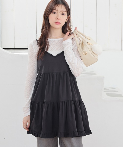 ふんわりガーリーに【デザイン】ふんわり広がるティアードシルエットがトレンドライクなデザイン。【素材・機能】ワッシャー加工で自然な風合いをプラスした綿100%素材。肩ひもはお好みの丈に調節可能なアジャスター付き。【スタイル】キャミワンピースとしてはもちろん、パンツと合わせてキャミチュニックとして着こなすのも◎デニムに合わせるとより今年らしいスタイリングになるのでおすすめ。インナー次第でロングシーズン活躍。●裏地/なし※胸囲部分のみ二枚仕立て品番:673-53-9412