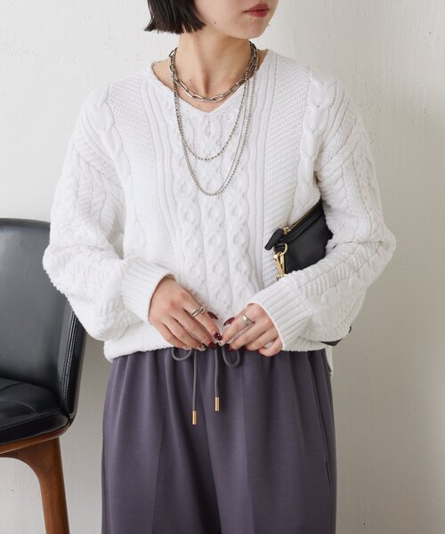 -商品ポイント- ・クラシックなケーブル編みで立体感のある編地がこなれ感を演出。 ・デコルテを美しく見せるVネックラインで女性らしさアップ。 ・暖かくやわらかな着心地。秋冬のデイリーにぴったりな、暖かさと快適さを両立。 ・パンツにもスカートにも合わせやすく、着回し力抜群! ーマテリアルー ■透け感:なし ■裏地:なし ■伸縮性:あり ■光沢感:なし ー洗濯方法ー 手洗い可能 ー注意事項ー 商品の画像はできるだけ実物に近い色味で掲載しておりますが、ご覧になるモニターや照明の環境により、実際の色味と若干異なって見える場合がございます。 あらかじめご了承くださいませ。 ・画像の商品はサンプルです。 実際の商品と仕様、加工が若干異なる場合があります。 ・サイズ表記はあくまで目安となります。 __________________________________ ※取り扱いについては、商品についている品質表示でご確認ください。 ※照明の関係により、実際よりも色味が違って見える場合があります。 またパソコン・スマートフォンなどの環境により、若干製品と画像のカラーが異なる場合もございます。予めご了承ください。 ※詳細画像の色合いをご参照ください。予めご了承ください。 __________________________________ 【お買い物をよりお楽しみいただくために♪ 】 ▼ 商品のお気に入り登録 お気に入りアイテムのお値下げ・再入荷・在庫ラスト1点など通知を受けることができます。 ▼ブランドのお気に入り登録 Jena espace merveilleuxの新商品や再入荷、セール、クーポン配布などお得な情報を受けることができます。