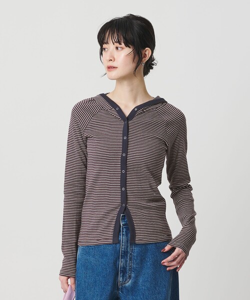 ■BEAUTY&YOUTH別注アイテム■ <Robert P. Miller >リングボタンがアクセントのフードトップス ■デザイン 完全別注でお作りしたフード付きのボタンカットソー。 「PANEL RIB」生地を使用した、からだに沿うほどよいフィット感が特徴です。 ボタンを留めた着こなしを楽しみたい、すっきりとしたシルエットの一着。 フードのデザインが装いにカジュアル感を添えてくれます。 ロングシーズン着やすいリブ生地は、肌寒い日の調整や旅行などのお出かけシーンにも活躍すること間違いなしです。 ■コーディネート 羽織としてはもちろん、コンパクトなサイズ感で一枚着としてオーバーオールやジャケットのインナーとして合わせたり、ワイドパンツとメリハリをつけたコーディネートもおすすめです。 <Robert P. Miller (ロバート P ミラー)> 1937年にアメリカ・アーカンソー州でロバート・P・ミラーによって創設された当ブランドは、独自の針抜き仕様「PANEL RIB」により、1940年代から60年代にかけて確固たるブランド地位を築きました。 着るほどに身体に馴染む快適さと、高品質な素材と縫製が特徴で、アウターとしてもインナーとしても幅広く活用できるアイテムを提供し、長年にわたり多くの人々に愛用されています。 【注意事項】 ※商品に「取り扱い上の注意書き」、「洗濯表示」がございます場合は、使用前に必ずご確認ください。 ※商品画像は、光の当たり具合やパソコンなどの閲覧環境により、実際の色味と異なって見える場合がございます。あらかじめご了承ください。 ※画像の商品はサンプルです。 店舗へお問い合わせの際は、全国のBEAUTY&YOUTH各店舗まで下記の品名/品番をお申し付けください。 品名:BL Miller×BY BTN TOP 品番:16274000005