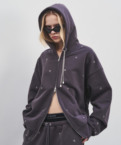 【DESCRIPTION】全体にハトメを打ち込んだ、オーバーサイズシルエットのフーディー。JOSEMOON定番の形に、フードへチェーンディテールを加えることでモードな存在感をプラス。ゆるさの中にエッジが光るデザインで、一枚でもスタイリングが決まるアイテム。同デザインのハーフパンツとのセットアップも可能で、より雰囲気のあるストリートモードに仕上がります。【MATERIAL】表地:綿100%洗濯方法:手洗い、ドライ【SET UP対応】同素材のスウェットハーフパンツとのセットアップ対応商品です。品番:1726120513-0注意:お使いのモニターによって、カラーが違って見える場合がございます。※商品画像はサンプルのため、色味やサイズ、素材の混率等の仕様に変更がある場合がございますので、予めご了承ください。・フーディーパーカー・フーディージップアップ・パーカー・パーカーオーバーサイズ・セットアップ【JOSE MOON/ジョゼムーン】スタンダードの中にもエッジの効いたアイテムも展開し、遊び心ある自由なスタイリングを提案■商品のお気に入り登録再入荷、残り1点などの通知を受け取ることが出来ます。■ブランドのお気に入り登録新商品や再入荷、ショップのおすすめトピックスなど、いち早くブランドのお得な情報を受け取ることができます。