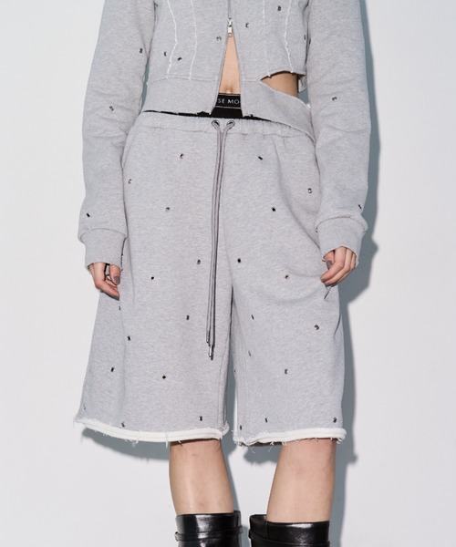 DESCRIPTIONハトメを打ち込んだデザインが目を惹くスウェットハーフパンツ。ボクサーパンツを重ねたようなウエストデザインで、ひと癖あるレイヤード感を表現。ボリュームのあるトレンドシルエットが、カジュアルながらモードな印象に導きます。同素材のトップスとのセットアップはもちろん、単品でもスタイリングのアクセントになる一枚。MATERIAL表地:綿 100%洗濯方法:手洗い、ドライ注意:お使いのモニターによって、カラーが違って見える場合がございます。※商品画像はサンプルのため、色味やサイズ、素材の混率等の仕様に変更がある場合がございますので、予めご了承ください。【JOSE MOON/ジョゼムーン】スタンダードの中にもエッジの効いたアイテムも展開し、遊び心ある自由なスタイリングを提案■商品のお気に入り登録再入荷、残り1点などの通知を受け取ることが出来ます。■ブランドのお気に入り登録新商品や再入荷、ショップのおすすめトピックスなど、いち早くブランドのお得な情報を受け取ることができます。※ご注文いただいた予約商品のお届け時期の確認は、注文履歴ページより行えます。