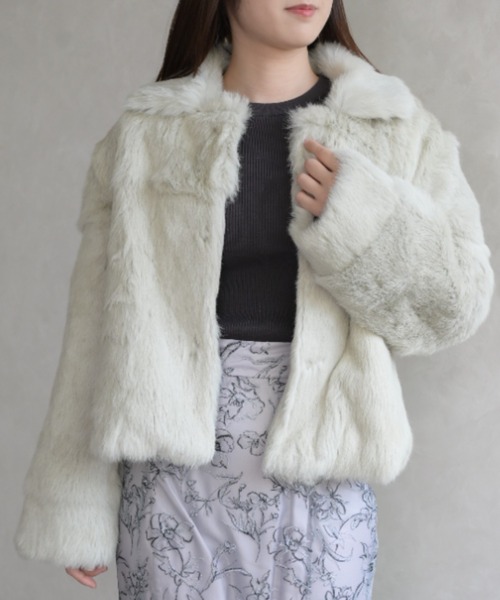 2025 Autumn&Winter Item 上品な存在感を放つファージャケット 【 design 】触れたくなるようなふんわりとしたファーで仕立てた、季節感たっぷりのショート丈アウター。 大きめの襟が顔まわりを華やかに見せ、コーデの主役になるデザインです。 程よいボリューム感がありながら、着膨れしにくいシルエットに仕上げ、デイリーにも特別なシーンにも活躍する一枚。 【 styling point 】タイトスカートやワンピースと合わせれば、一気にフェミニンで品のあるスタイルに。 デニムやブーツとの合わせで大人カジュアルに寄せるのもおすすめです。 羽織るだけで季節感をプラスでき、冬のお出かけコーデを一段と華やかにしてくれます。 ※ご覧のモニター環境や光の照射・角度により、 画像の色味と多少異なる場合がございます。 ご了承ください。 ---------------------------- 透け感 [なし] 裏地 [なし] 伸縮性 [なし] 生地の厚さ [ふつう] ---------------------------- 【 お買い物をお楽しみいただく為に 】 ▼お気に入り登録をオススメします。 『♡』をクリックすると… ・《商品のお気に入り登録》で再入荷通知や ラスト1点の通知、セールやクーポンの通知も 受け取ることができます。 ・《ブランドのお気に入り登録》で新作商品や再入荷など、 お得な情報を受け取ることができます。