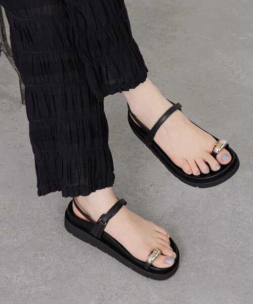 2/12(木)12:00予約開始予定お気に入り・再入荷リクエストをご登録してお待ちください■アイテム親指部分をリングデザインで軽やかに支える、ミニマルなトゥリングサンダル。厚みのあるインソールには、立体感のあるフットベットを用いで、足にフィットし疲れにくさを軽減。かかとには安定感のあるストラップ、甲部分は面ファスナーで調整でき、着脱のしやすさとフィット感の良さを両立しています。細身のストラップやトップに添えたアクセントが、カジュアルになりすぎず女性らしい雰囲気に。合成皮革を使用しているので気軽に使え、デイリーに活躍してくれます。■素材・洗濯表示素材アッパー:合成皮革ソール:合成底※着用時・洗濯時は、必ず取扱い表示・タグをご確認の上、お取り扱い下さい。《予約商品について》・サンプルの為、素材情報については企画段階の情報を記載しております。公的機関での試験データ結果を受け、量産にあたり混率の変更が発生する場合がございますので、ご了承くださいませ。・サンプルでの撮影、計測をしております。商品の仕様が一部変更になる場合がございます。・撮影サンプル品はブランドタグがついておりません。製品にはタグがつきますので、製品の表に縫い糸が見える場合がございます。・工場の生産の都合上、納期が変更になる場合がございます。検品や輸送の関係で、発送日が前後しますのでご了承ください。また、入荷状況により、お客様への発送が店頭販売より遅れる場合もございます。・店頭に陳列していた商品も含まれる場合がございます。《商品画像について》ご覧頂いている商品の写真につきましては、できるだけ実物の色に近くなるように努めておりますが お使いの環境(モニター、ブラウザ等)の違いにより、色の見え方が実物と若干異なる場合がございます。 予めご了承ください。《商品・ブランドのお気に入り登録》【ハートをタップ】登録カラーの商品の「残りわずか」「再入荷」「値下げ」通知を受け取ることができます。【各ショップアプリにてブランドフォロー】 新商品などの入荷情報、最新のニュースやお得な情報を受け取ることができます。