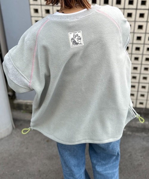 インポートのような配色が◎寒い日に活躍するフリースボアのオーバーサイズスウェット軽くて暖かいボアフリース素材に、配色の袖口リブ/配色ドロストゴム/配色ステッチが効いた、ラグラン袖のビッグシルエット スウェットトップス。ボリュームスリーブに、ラインのように入った、袖のリブ切り替えもポイントに。裾のドロストを絞ったり、ゆるめたり、2wayで着用できます。カバーリングアイテムとしても。袖口の配色リブが、手を動かす度にチラッと見え隠れ。こなれ感のある大人カジュアルに◎衿まわりは、程よくゆったりサイズ。Tシャツやハイネックなどのインナー見せレイヤードスタイルにも◎背裏に、VintageライクなCATロゴネームがついて、後ろ姿も◎今日1日を大切にする!今この瞬間を最大限に活かす!という、“Seige the day”猫のゴロゴロ音(Purr)と素晴らしい(Brilliant)を組み合わせた造語 #purrilliant のロゴが入った、ネコロゴネーム。明るめの色展開で、暗くなりがちな冬コーデのアクセントに。春先の肌寒い時期までロングシーズン着用できます。春コーデにも◎イージーケアなのも、嬉しいポイント。同じ素材のパンツとのセットアップも可能。配色フリースボア バレルレッグカーブパンツ:問い合わせ番号101692502(ZOZO)/ 102490(店舗)ライトベージュに蛍光ライム袖口+ブルーステッチ+ピンクゴムライトグレーに蛍光オレンジ袖口+ピンクステッチ+ライムゴム2色展開です。フリース/モコモコ/大人カジュアル/秋冬コーデ/冬コーデ/冬服/春服/ビッグシルエット/レトロスポーツ/ストリート/ヴィンテージライク/ビンテージライク/Vintageライク/配色/バックコンシャス/バックシャン/ラウンジウェア/リラックススタイル/ビッグシルエット/オーバーサイズ【Information】◆《お気に入り登録》がオススメ◆・「商品のお気に入り登録」で再入荷通知や、ラストの通知、セール通知も受け取ることが出来ます。・「ブランドのお気に入り登録」で新商品や再入荷など、お得な情報を受け取ることが出来ます。※撮影時のライティング、ご覧になっているモニター・PC環境により、実際の商品と色味が異なって見える場合がございます。予めご了承をお願い致します。※他のキャンペーンにより、期間中に価格が変動する場合があります。※セールは予告なく終了させていただく場合もあります。※ご注文いただいた予約商品のお届け時期の確認は、注文履歴ページより行えます。