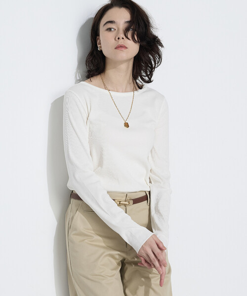 《デザイン》体に優しくフィットし、伸びも良く着心地が滑らかなテレコプルオーバーです。ニットプルオーバー(商品番号:21-01IO01-206)の襟ぐりから、ちらっと見える位の絶妙なネックまわりの大きさにしています。また、長めの袖丈なので袖口をのぞかせるスタイリングがおすすめです。季節を通して長く着られるベーシックなシルエットは一枚でも、ニットやシャツなどのインナーとしても便利な一着です。《素材》自然由来の持続可能な原料・キュプラと綿をブレンドし、こだわりの製法で仕上げたオリジナルな糸で編み立てたストレッチテレコです。伸縮性に優れ、ソフトで滑らかな肌触りが特長です。程良い肉感とキックバックで、季節を問わない素材感です。