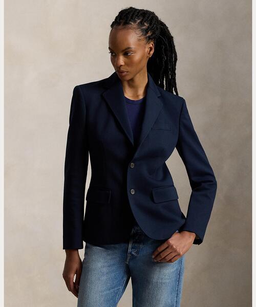 ポンチ素材で編み上げ、柔らかさとかっちりしたシルエットを兼ね備えたシングルブレストのブレザー。ノッチドラペルとウエストのポケットでディテールをプラス。 ・スリムフィット / 腰丈。 ・ノッチドラペル / 2つボタンのシルエット。 ・長袖、4つボタンのカフス / ショルダーパッド。 ・左胸に斜めの箱ポケット / フロントウエストにフラップポケット2つ。 ・フロントウエストにダーツ / 後身頃にプリンセスライン / センターベント / 部分裏地。 ・本体:ポリエステル 59%、綿 41% 本体裏地:ポリエステル 100% 袖裏:レーヨン 52%、アセテート 48% ・モデル身長178cm、着用サイズ4。 ※商品の色味は、光のあたり具合など諸条件により色感が多少異なって見える場合がございますので予めご了承下さい。 ポロ ラルフ ローレン
