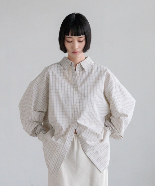 ■素材■ポリエステルで綿の風合いを表現したコットンライクファブリックになります。柔らかな風合いでシワにもなりづらく快適に着こなせて、お手入れも簡単な素材です。■デザイン■オーバーサイズのチェックシャツ。今年らしいオリジナルの細かいチェックがポイント。スタンダードなデザインなので一枚持っていると万能なアイテムです。■スタイリング■ニットや裏毛のインナーとしても暖かくなったら羽織やビスチェなどと合わせたりと様々なアイテムと相性抜群です◎一枚持っていると重宝するアイテムです。