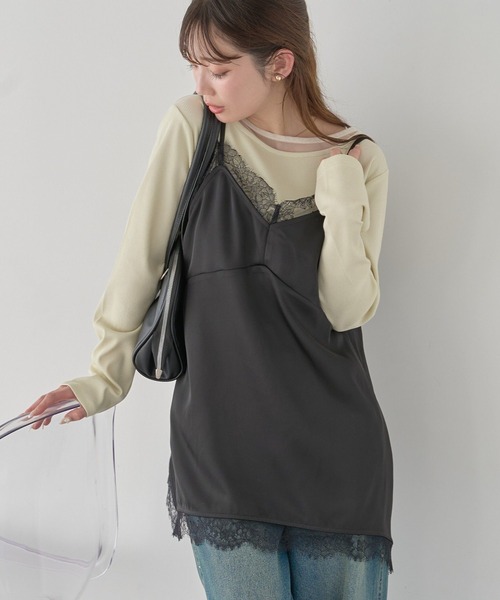 トレンドのボーホースタイルを1枚で表現できるレースキャミ。品の良いサテンに繊細なレースがカジュアルなアイテムと合わせると、ぐっとレディな装いに変化させてくれます。スポーティーなブルゾンの下にランジェリーライクレースキャミを重ねて、フレアパンツを重ねるスタイルがおすすめです。※画像はサンプル品を使用しているため、実際の商品とカラー、仕様、加工、サイズが若干異なる場合がございます。予めご了承ください。※モデル着用画像は光の当たり具合で色味が違って見える場合がございます。商品の色味は物撮りの画像をご参照ください。● earth music&ecology ●(アースミュージック&エコロジー)「いいことある服。」たかが服。されど服。波風の多い日々のなかでもほほえんで前を向くあなたを、つつんで一緒に歩きたい。 いいことあるかも。そんな期待までまとえる服をあなたに。earth music&ecologyは、毎日を頑張る女性たちをちょっと前向きにするブランドです。 ▼ 商品のお気に入り登録がおすすめです ▼商品ページ内の「♡」ハートマークをクリック。完売時の再入荷や、最後の1点の通知、コーディネート画像がアップされたとき、お得なお値下げの際の通知を受ける事ができます。【お知らせ】ページでも通知が確認できます。