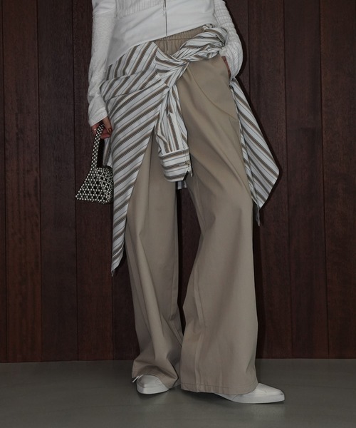 ゆとりを持たせたシルエットに、落ち感のある素材を組み合わせたワイドパンツ。ウエストはゴム仕様で締めつけ感なく着用できます。腰まわりから裾まで直線的に広がり、体のラインを拾いにくいのも特徴。カジュアルにもきれいめにも振れるため、日常のスタイリングに取り入れやすい一本です。詳細補足仕様:ベルトループなし / 脇ポケットあり / バックポケットなし伸縮性:なし 透け感:なし(アイボリーのみややあり) 光沢:なし裏地:なし 厚さ:普通サイズ感:通常instagram→chuclla_official取扱注意事項※サイズは、測定方法と測定者によって多少の誤差がありますのでご了承下さいませ。また体型によって、サイズ感に個人差がございます。(平置き採寸)※商品によってはシワがつきやすく、畳みジワや折りジワなどが強く出る場合がございます。その際は加湿した風呂場に数時間干すか、スチームアイロンでのお手入れをお勧めしております。※生地の素材上、においが気になる場合がございます。その際は陰干しして頂くと、ほとんど感じにくくなります。※レース等の繊細な素材を使用している場合には、お取り扱いにご注意下さい。※デニムを使用した製品は、インディゴ染めをしています。汗や摩擦により移染しやすいので、白色、淡色の組み合わせや重ね着はお避け下さい。※ニット素材を使用した製品は、重みで伸びやすくなりますのでハンガーでの保管はお控えください。※お洗濯の際には、品質表示の指示に従ってください。必要であれば専門店にご相談ください。家庭でご洗濯できる商品に関しては、洗濯専用ネットをご使用の上、個別での洗濯をお勧めいたします。お色物は、色移りする可能性がございます。※着用画像は撮影状況や光によって、多少異なる場合がございますので、置き画像をご確認下さい。※2023年7月1日より、環境に配慮した取り組みの一環として、紙のアテンションタグを廃止しております。