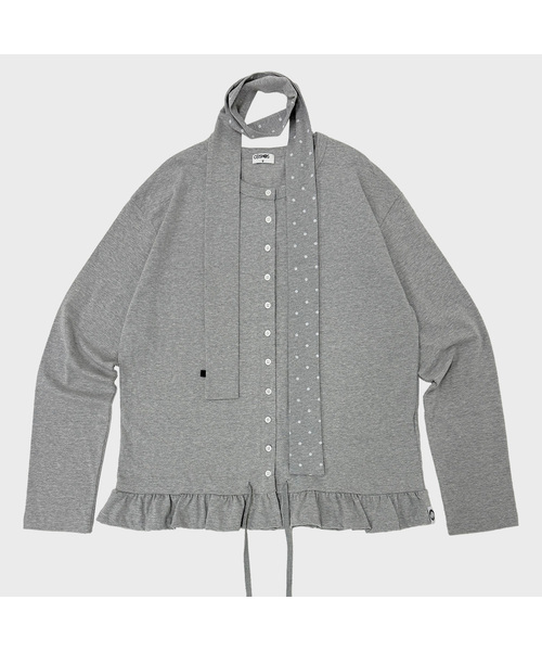 ネティドットスカーフセットアップシャーリングカンカンバクシTシャツカーディガン_グレー