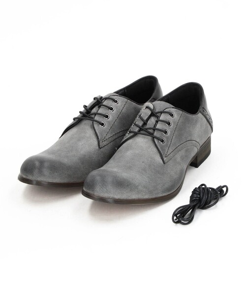 ■デザイン定番、外羽根デザインのプレーントゥシューズ。トゥスプリングの効いたシャープなシルエットで少し細長いの綺麗なラスト(木型)を採用。カーブした綺麗なラインをデザインの特徴に、牛革のヒールカウンターや配色の合皮パイピングを入れて細部にまでこだわっています。履き口にクッションを入れて足当たりを良くしています。ナチュラルなウッド調ソールは軽量で反り返りも良く、デニムなどのカジュアルな雰囲気にも合わせやすいです。シューレースは丸ゴムタイプと従来の伸びないロウ引きタイプも付けていますので好みに合わせて変えられます。最終仕上げで手作業によるアンティーク加工を施して高級感のある仕上がりにしてます。今季、ソール底の滑り止めの彫りを深くしました。■サイズ少しつま先に捨寸(ゆとり)のあるラストなので全長が長く感じるかも知れません。ワイズは通常です。シューレースで調整してください。■素材19ライトグレー・49ブラックは、薄っすらとムラプリントの入ったヌバック調のシンセティックレザーに、細かいメッシュ調のエンボス加工を施しています。67ネイビーは濃いインディゴデニム素材。各色、ヒールカウンター部分には牛革を使用しています。■製法合成底のセメンテッド製法。■注意点こちらの商品は手作業による製品加工を施しています。加工の特性上、色や濃淡、ムラが一点一点異なり、カラー・サイズによって多少の誤差が生じる場合があります。製品加工ならではの風合いとしてお楽しみください。※画像の商品はサンプルです。 実際の商品とは仕様・加工・サイズ・素材が若干異なる場合がございます。※掲載画像の商品の色味は、撮影場所や光の当たり具合などにより色味が異なって見える場合がございます。 商品の色味は、生地アップの画像をご参照ください。 また、お客様のお使いのPC・スマートフォン等のモニター環境などにより色味が異なって見える場合がございます。 予めご了承の上ご注文ください。※着用モデル身長182cm B89cm W75cm H90cm 着用サイズ26