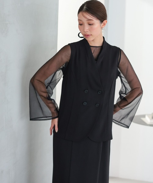 結婚式 お呼ばれ 二次会 謝恩会 成人式 同窓会 対応 20代 30代 シアー レイヤード 2WAY セットアップ 3点セット ベスト シアーブラウス ワンピース パーティー オケージョン ドレス