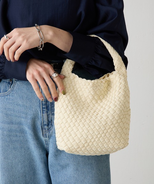 持つだけでこなれて見えるメッシュのバケツ型バッグ【POINT】・柔らかく軽い質感の素材を編み込んだ、高見えするバッグです。・コロンとしたバケツ型フォルムとワンハンドルがこなれて見えて、カジュアルでもきれいめでも馴染みます。・マチが広く、大きく開くので中身が見やすく取り出しやすいです。マグネットボタンもつけており安心◎・微光沢の軽く見える素材でコーデに抜け感を演出してくれます。≪収納目安≫【素材】ナイロン, ポリウレタン, 合皮【サイズ】高さ:22cm幅:19cmマチ:10cmハンドルの高さ:12cm重さ:約370g【仕様】開閉部:マグネットボタン外側ポケット:内側ポケット:≪返品・交換について≫・着用後、洗濯後の返品・交換は致しかねます。・商品到着後、着用前に商品状態のご確認をお願い致します。・ECサイトでご購入いただいた商品は、お修理を承っておりません。【気になる商品は「お気に入り」登録を】ハートマークをクリックし、お好きなカラーを選んでお気に入りに登録すると入荷情報や残り1点の通知、完売カラーの再入荷、セール情報などを受け取ることができます。※撮影場所やお使いのモニター環境により若干お色味が異なる場合がございます。特にロケの撮影では明るく見える傾向にございます。詳細撮影画像で色味をお確かめくださいます様お願いいたします。※サンプルで撮影をしております。若干の仕様が変更になる場合がございますので予めご了承の上ご注文くださいますようお願いいたします。※サンプルでの採寸のためあくまで目安となります。予めご了承ください。