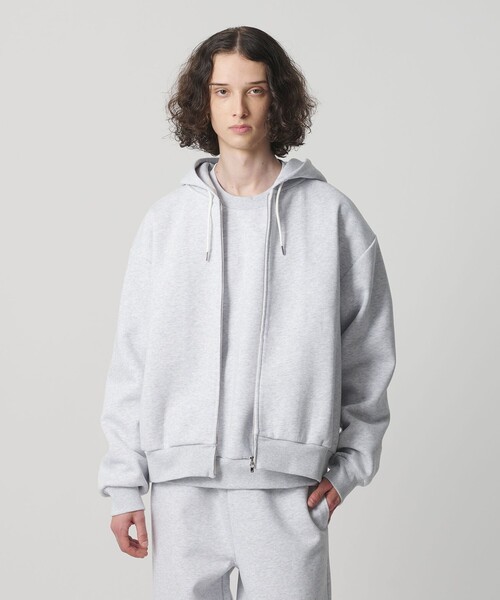 表面に裏毛、裏面天竺のボンディング素材を使用したジップアップフーディー。表面と裏面の間にソフトで極薄のフィルムを挟み込む事で風の侵入を軽減させる仕様にしています。程よいハリ感のある素材特性を活かし、全体に丸みを帯びたシルエットに設計。ユニセックスで着用頂けます。セットアップで着用可能なボトムスもご用意しています。■ボトムス(対象品番:83146000007)============================裏地:あり透け感:なし伸縮:ややあり光沢感:なし============================【注意事項】※商品に「取り扱い上の注意書き」、「洗濯表示」がございます場合は、使用前に必ずご確認ください。※商品画像は、光の当たり具合やパソコンなどの閲覧環境により、実際の色味と異なって見える場合がございます。あらかじめご了承ください。※商品の色味の目安は、商品単体の画像をご参照ください。※画像の商品はサンプルです。実際の商品と仕様、加工、サイズ、素材が若干異なる場合がございます。※工場の生産の都合上、納期が変更になる場合がございます。※発送日の前後については予めご了承ください。※入荷状況により、お客様への発送が店頭販売より遅れる場合もございます。店舗へお問い合わせの際は、全国のBEAUTY&YOUTH各店舗まで下記の品名/品番をお申し付けください。品名:MT BNDG FZ HOOD 品番:83276000002