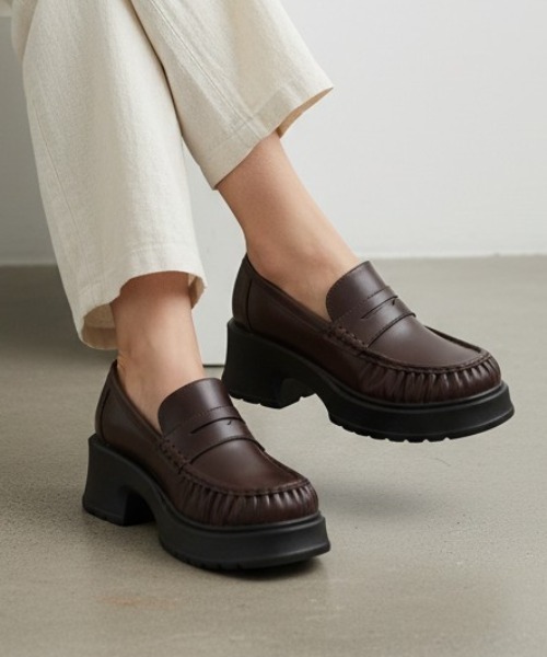 2026年春新作定番のコインローファーも、くしゅくしゅのギャザーディテール×厚底のトラックソールで盛れる&映えるアイテムに! 旬のボリュームソールは履くだけでスタイルアップが叶う! どことなくレトロ雰囲気が漂うフォルムは、マニッシュコーデにはもちろん、ガーリーコーデや甘辛MIX、トレンドのスポーツミックススタイルや韓国コーデとの相性も◎ デニムやソックス合わせもサマになる! 見た目より軽くて安定感があって歩きやすいのもうれしいポイント。 ◇履きやすさのポイント◇ ・足が痛くなりにくく疲れにくい低反発クッションインソール ・裏材はクッション入りの柔らかい素材で足当たりの良い履き心地 ・体重をサポートしてくれる厚底は安定感があって歩きやすい! ・見た目よりも軽くて足が疲れにくい ・柔らかい仕上げで足当たりがソフトなので、履き心地がよくストレスフリーに履ける! ・踵クッションで足当たりが良く、脱げにくく靴擦れしにくい < サイズ詳細> ■S (22.5-23.0cm)■長さ:22.9cm/ワイズ:21.5cm/幅:7.9cm/ヒール高さ:6.0cm ■M (23.5-24.0cm)■長さ:23.9cm/ワイズ:22.2cm/幅:8.0cm/ヒール高さ:6.0cm ■L (24.5-25.0cm)■長さ:24.9cm/ワイズ:22.9cm/幅:8.1cm/ヒール高さ:6.0cm ■LL (25.5cm)■長さ:25.4cm/ワイズ:23.3cm/幅:8.2cm/ヒール高さ:6.0cm ※サイズスペックについては、VivianCollection独自の方法により採寸しております。 ※靴の長さとは、靴のつま先から靴の踵の長さを表記しております。 プチプラシューズ専門店「VIVIAN COLLECTION」 ▼お気に入り登録をおすすめします▼ ♡をクリックしてお得なセール情報や、再入荷情報、ラスト1点の通知など、お買い得情報をいち早く受ける事ができます。 ブランド【VIVIAN COLLECTION】のお気に入り登録も一緒に追加するとお得なニュースを配信しております♪