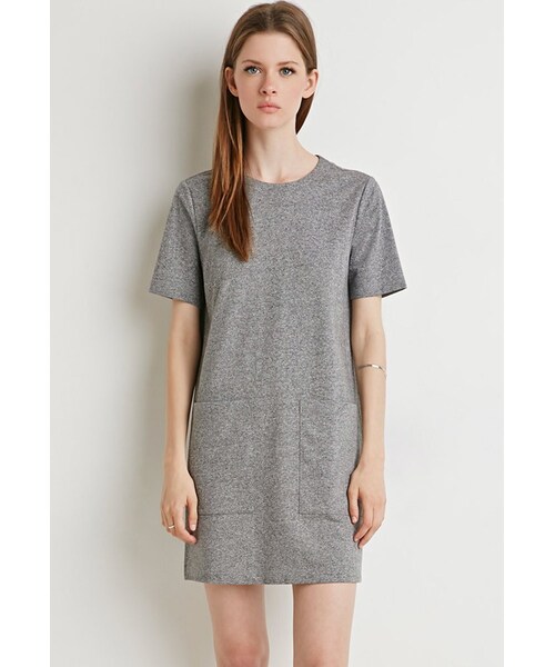 STYLE DETAILS: A short-sleeved dress cut from a marled French terry. Knit, unlined Two patch pockets 65% polyester, 35% cotton Hand wash cold Made in China SIZE DETAILS: Measured from Small 33" full length, 38" chest, 38" waist, 9" sleeve length